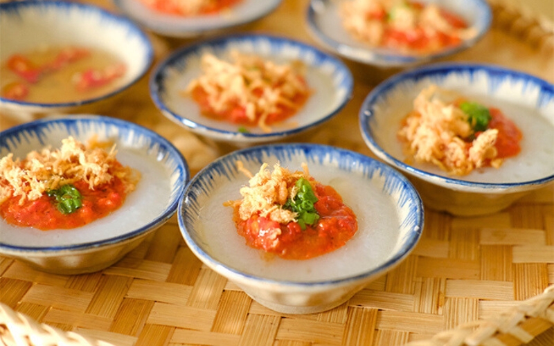 Différent des versions du Sud ou de Huê, le bánh bèo de My Son se distingue par sa texture moelleuse et sa garniture parfumée au porc, champignons ou crevettes, servi avec une sauce épicée.