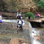 C’est après une dizaine heures de trajet, sur des routes vraiment cabossées que nous sommes arrivés au pied du village. Le lieu n’étant accessible qu’à pied ou en moto nous prévoyons de repartir le lendemain à 5h30 du matin pour randonner et charger les fournitures sur les motos!
