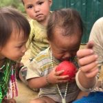 Nous sommes accueillis par une ribambelle d’enfants. Au début timides, nous faisons rapidement connaissance et partageons des beaux moments.