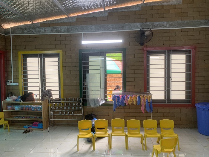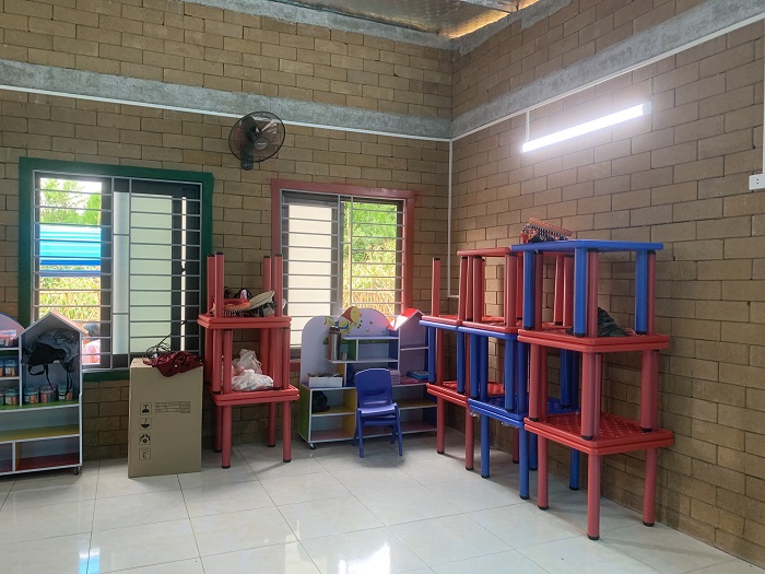 L’école maternelle Hoa Mi est construit comprenant : 2 salles de classe aux normes pour les élèves de maternelle, 1 salle communautaire, 1 zone de toilette, une aire de jeux et d’autres installations (ventilateurs de plafond, lits pour les élèves, lavabos…).