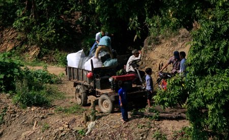 Après 5 heurs de route, nous étions présents à Ba Be et pour y passer une première nuit, très tôt le matin le lendemain, l’équipe de HORIZON VIETNAM TRAVEL et les bénévols (au total 12 personnes) ont commencé la route en direction de Khau Qua et Nam Dai, comme la condition de route est très difficile, nous avons mobilisé les 11 motos et un petit camion spéciale pour transporter les cadeaux pour les habitants. Après 35 km en motos suivant les sentiers de montagne, nous étions présents à l’école de la commune.
