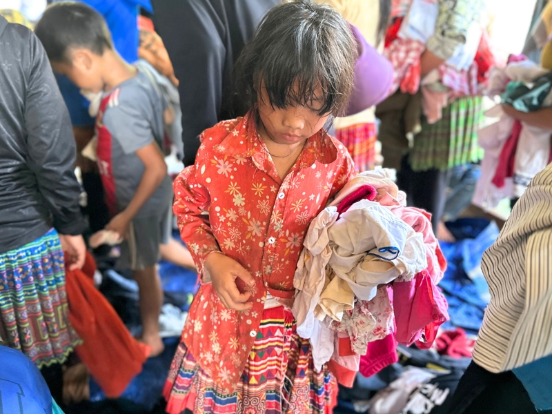 Soucieux de soutenir les actions humanitaires régulières de Horizon Vietnam Travel, de nombreux bienfaiteurs et nos voyageurs ont généreusement fait don de vêtements d’occasion pour que nous puissions les offrir aux enfants. Ces cadeaux ont été remis en main propre aux enfants avec le message « Ce qui est vieux pour certains, est nouveau pour d’autres », portant avec eux tout l’amour et l’attention de la communauté. Grâce à ces dons, les enfants ont reçu des vêtements supplémentaires pour leur vie quotidienne, ce qui leur a apporté la joie et le réconfort.
